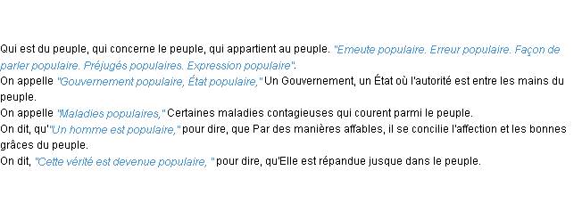 Ancienne définition académique pour le terme « populaire » (parue en 1835).