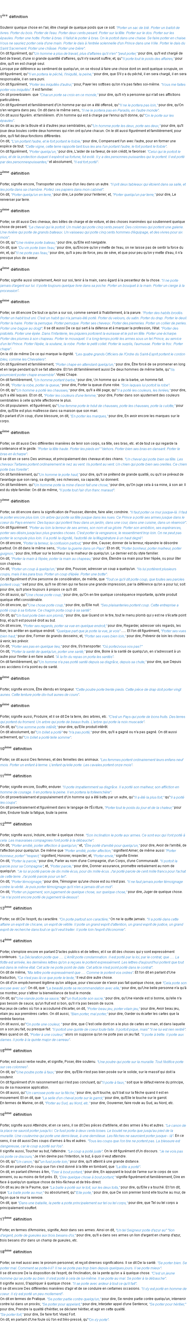 Ancienne définition académique pour le terme « porter » (parue en 17962).Merci à Gustave et Colette pour la numérisation du mot porter.
