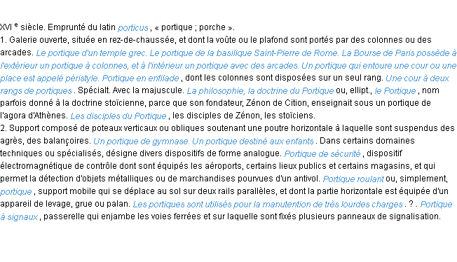 Définition académique pour le terme « portique » (parue en 1932).