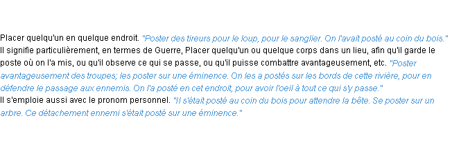 Signification du terme « poster », parution de 1932, dictionnaire académique Français.
