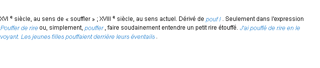 Définition académique pour le terme « pouffer » (parue en 1986).