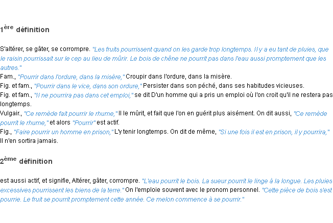 Définition « pourrir » du dictionnaire académique Français, parution de l’année 1986.