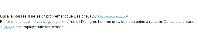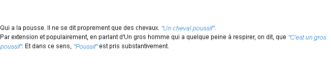 Définition de l’Académie Française (édition de 1932) pour le mot « poussif ».