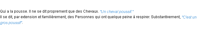 Ancienne définition « poussif » du dictionnaire académique Français, parution de l’année 1835.