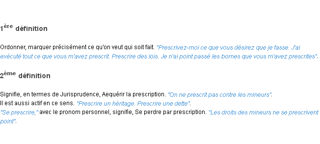 Définition du mot « prescrire » par l’équipe de la-definition.fr (édition de 2011).Merci à Arnaude et Véronique pour la numérisation du mot prescrire.