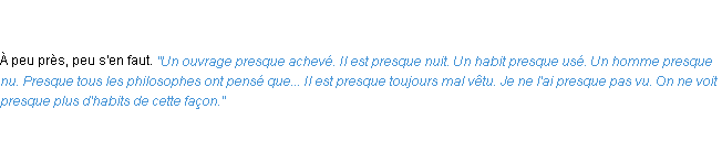 Ancienne définition du mot « presque » par l’Académie Française (édition de 1835).