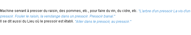 Définition de l’Académie Française (édition de 1932) pour le mot « pressoir ».