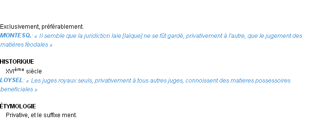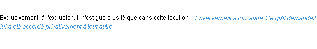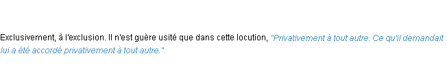 Définition de « privativement » de source académique (Académie Française, parution de 1932).