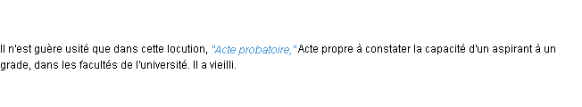 Ancienne définition académique pour le terme « probatoire » (parue en 1798).