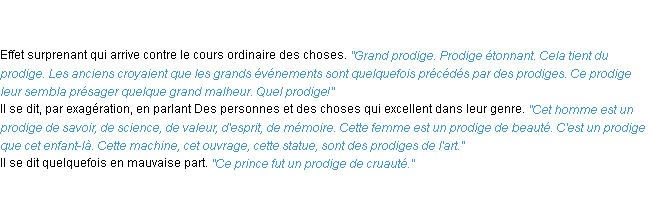 Ancienne définition académique pour le terme « prodige » (parue en 1798).