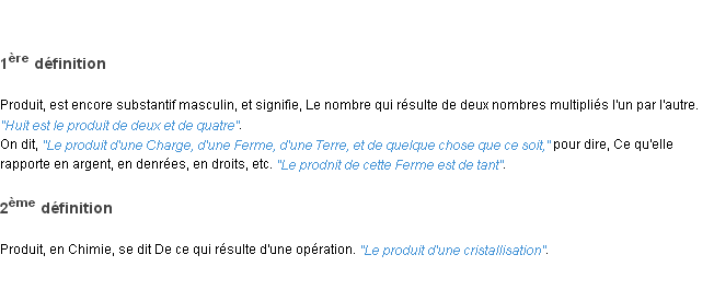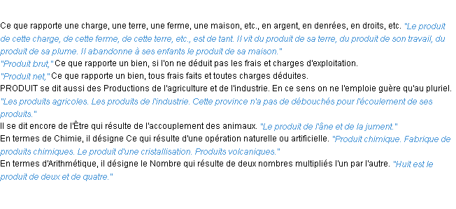 Ancienne définition de « produit » de source académique (Académie Française, parution de 1798).