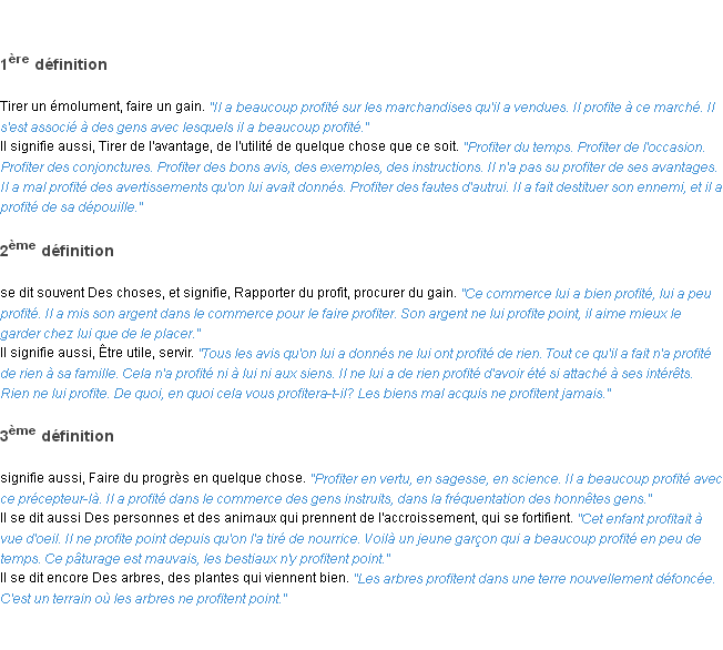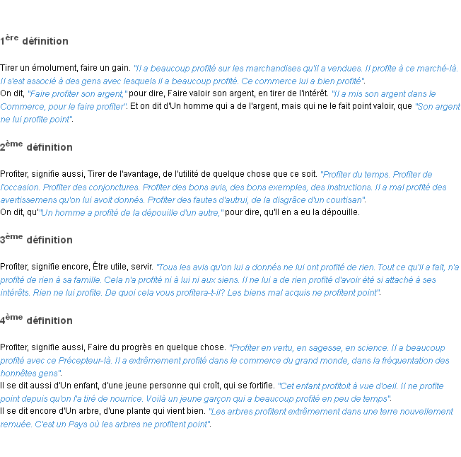 Définition du mot « profiter » par l’Académie Française (édition de 1932).