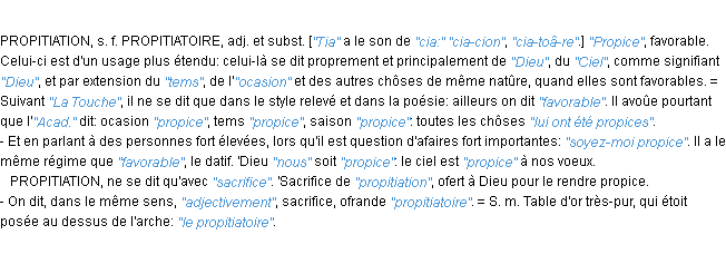 Ancienne signification éditée en 1835 pour le terme « propice » par l’Académie Française.