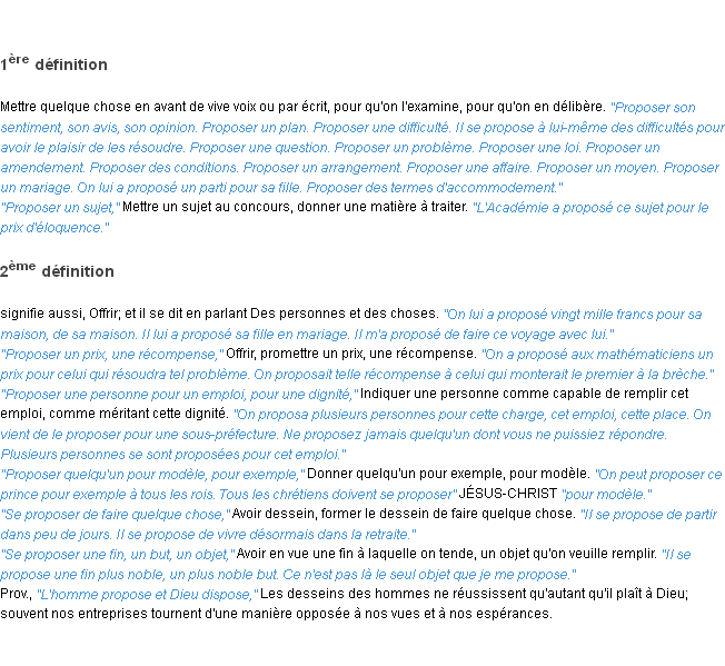 Ancienne définition du mot « proposer » par l’Académie Française (édition de 1835).