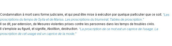 Signification éditée en 1932 pour le terme « proscription » par l’Académie Française.