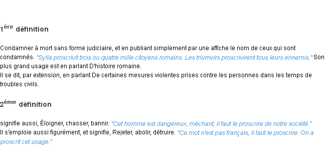 Ancienne définition académique pour le terme « proscrire » (parue en 1835).