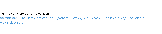 Signification éditée en 1876 pour le terme « protestatoire » par Emile Littré.