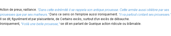 Définition de l’Académie Française (édition de 1932) pour le mot « prouesse ».