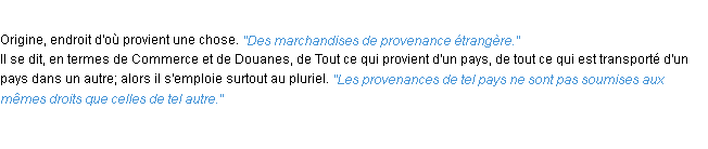 Ancienne définition « provenance » du dictionnaire académique Français, parution de l’année 1835.