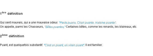 Définition du mot « puant » par l’équipe de la-definition.fr (édition de 2011).Merci à Océane et Edwige pour la numérisation du mot puant.
