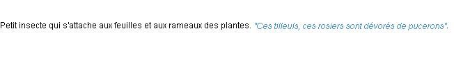 Définition de « puceron » issue du Littré (Auteur Emile Littré, édité en 1876).
