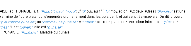 Signification éditée en 1932 pour le terme « punais » par l’Académie Française.