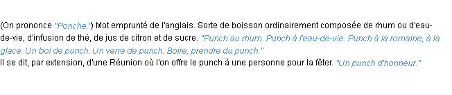 Signification du terme « punch », parution de 1876 (dictionnaire le Littré).Merci à Arianne et Lionel pour la numérisation du mot punch.