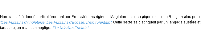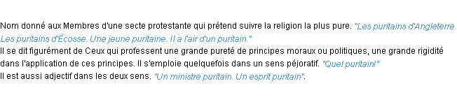 Définition de l’équipe de la-definition.fr (édition de 2009) pour le mot « puritain ».