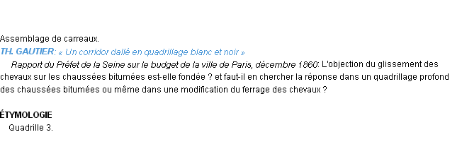 Signification du terme « quadrillage », parution de 1876 (dictionnaire le Littré).Merci à Lazare et Maximilienne pour la numérisation du mot quadrillage.