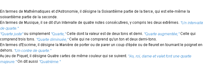Ancienne définition du mot « quarte » par l’Académie Française (édition de 1835).