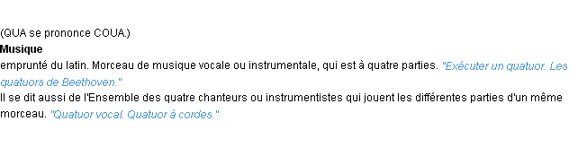 Signification développée en 1876 par Mr Littré (dictionnaire dit d’Emile Littré).Merci à Henri et Florianne pour la numérisation du mot quatuor.