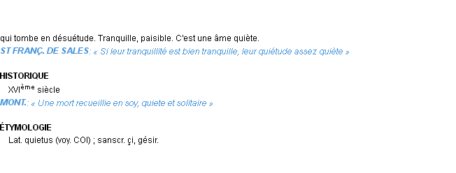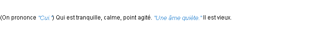 Définition d’Emile Littré (édition de 1876) pour le mot « quiet ».Merci à Baptiste et Corinne pour la numérisation du mot quiet.