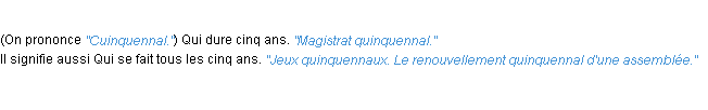 Ancienne définition « quinquennal » du dictionnaire académique Français, parution de l’année 1835.