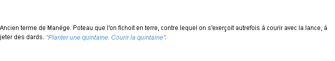Ancienne définition académique pour le terme « quintaine » (parue en 1835).