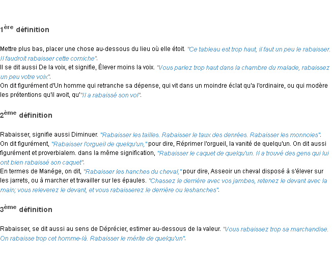 Ancienne définition académique pour le terme « rabaisser » (parue en 1798).