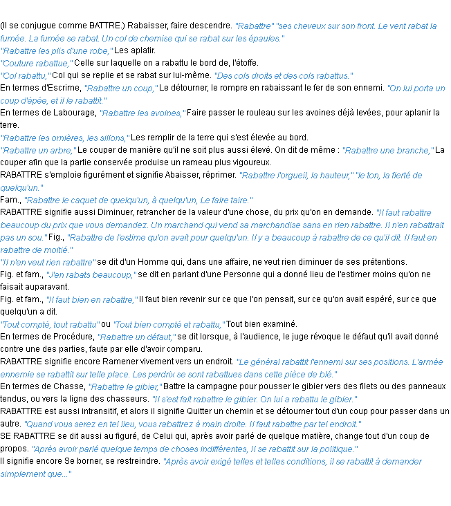 Signification éditée en 1932 pour le terme « rabattre » par l’Académie Française.