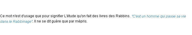 Ancienne définition développée dans dictionnaire académique, 17962.Merci à Suzette et Didier pour la numérisation du mot rabbinage.