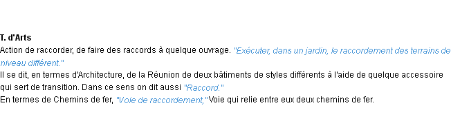 Ancienne définition du mot « raccordement » par l’Académie Française (édition de 1798).