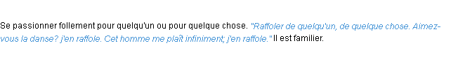 Ancienne signification éditée en 1835 pour le terme « raffoler » par l’Académie Française.