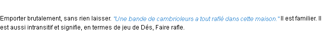 Définition d’Emile Littré (édition de 1876) pour le mot « rafler ».