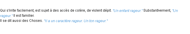 Signification du terme « rageur », parution de 1932, dictionnaire académique Français.