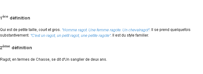 Signification parue en 2009 (source la-definition.fr).Merci à Luc et Aurore pour la numérisation du mot ragot.