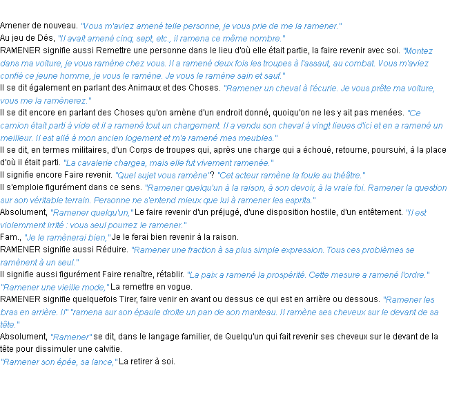 Ancienne définition académique pour le terme « ramener » (parue en 1835).