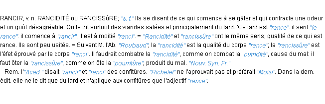Définition académique pour le terme « rance » (parue en 1932).