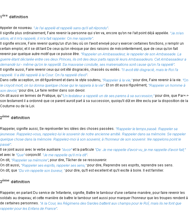 Définition du mot « rappeler » par l’Académie Française (édition de 1932).