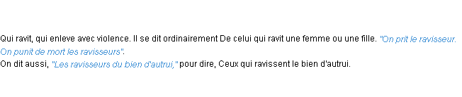 Ancienne signification du terme « ravisseur », parution de 1798, dictionnaire académique Français.