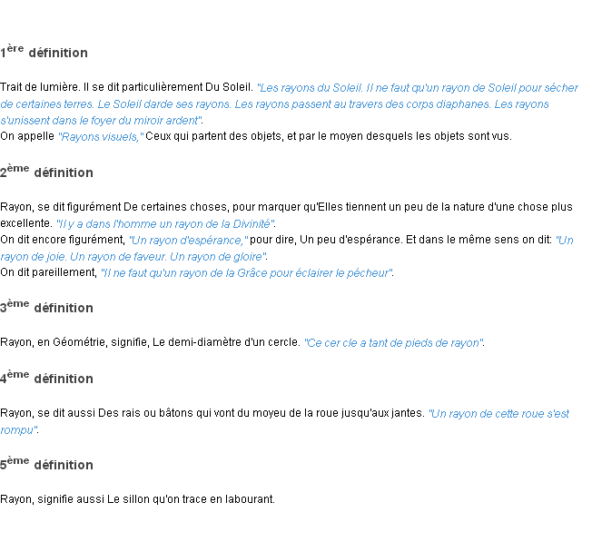 Définition du mot « rayon » par l’Académie Française (édition de 1932).
