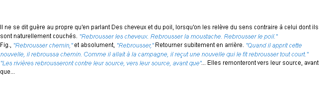 Signification éditée en 1932 pour le terme « rebrousser » par l’Académie Française.