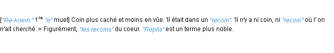 Ancienne signification éditée en 1835 pour le terme « recoin » par l’Académie Française.