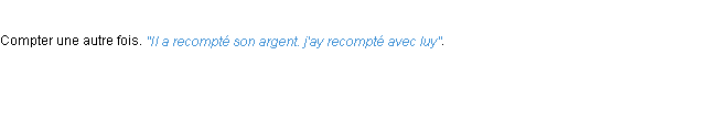Ancienne signification du terme « recompter », parution de 1694, dictionnaire académique Français.Merci à Florette et Armand pour la numérisation du mot recompter.